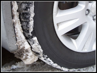 Steve’s truck was just re"tired." He was at work on Friday, so I took this picture of my Outback's tire. I like the composition of this shot. That big goober of snow behind my car tire is a big pet-peeve of mine.